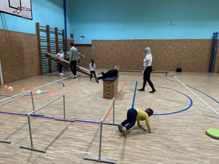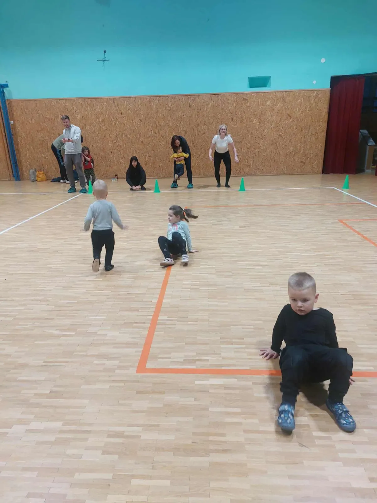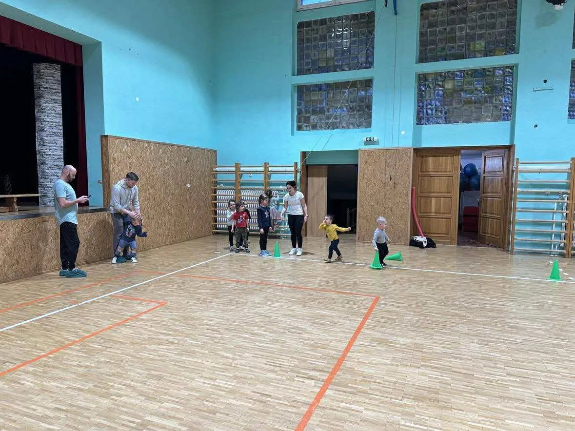 Nejdřív jsme si dali závody, placáky a podlézačky, kde děti zjistily, že rodič je občas skvělý most a příjemná překážka.