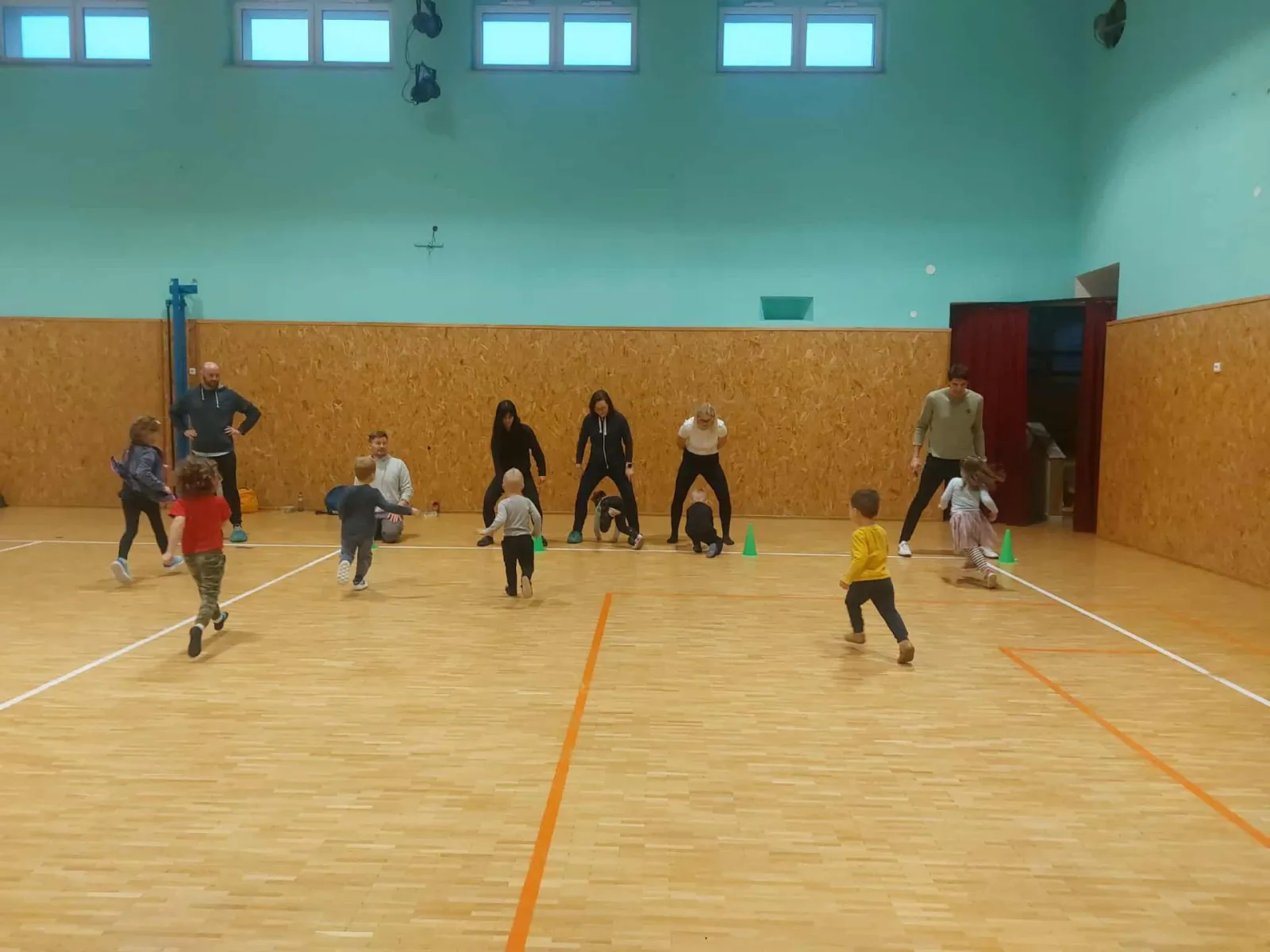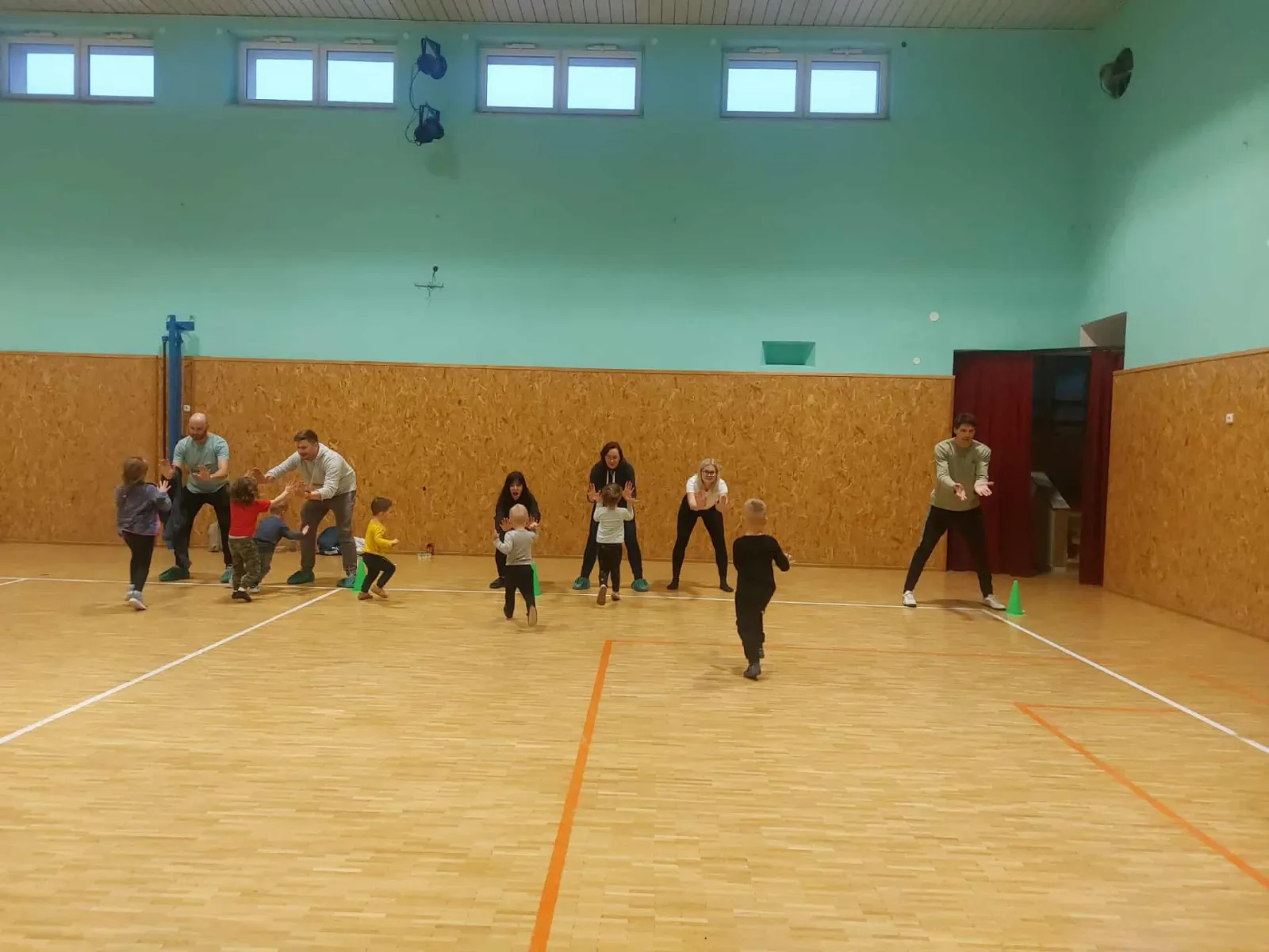 Když trenérka Sabča začala honit, děti statečně utíkaly a zachraňovaly se nejsladším úkolem dne – obejmout svého rodiče.