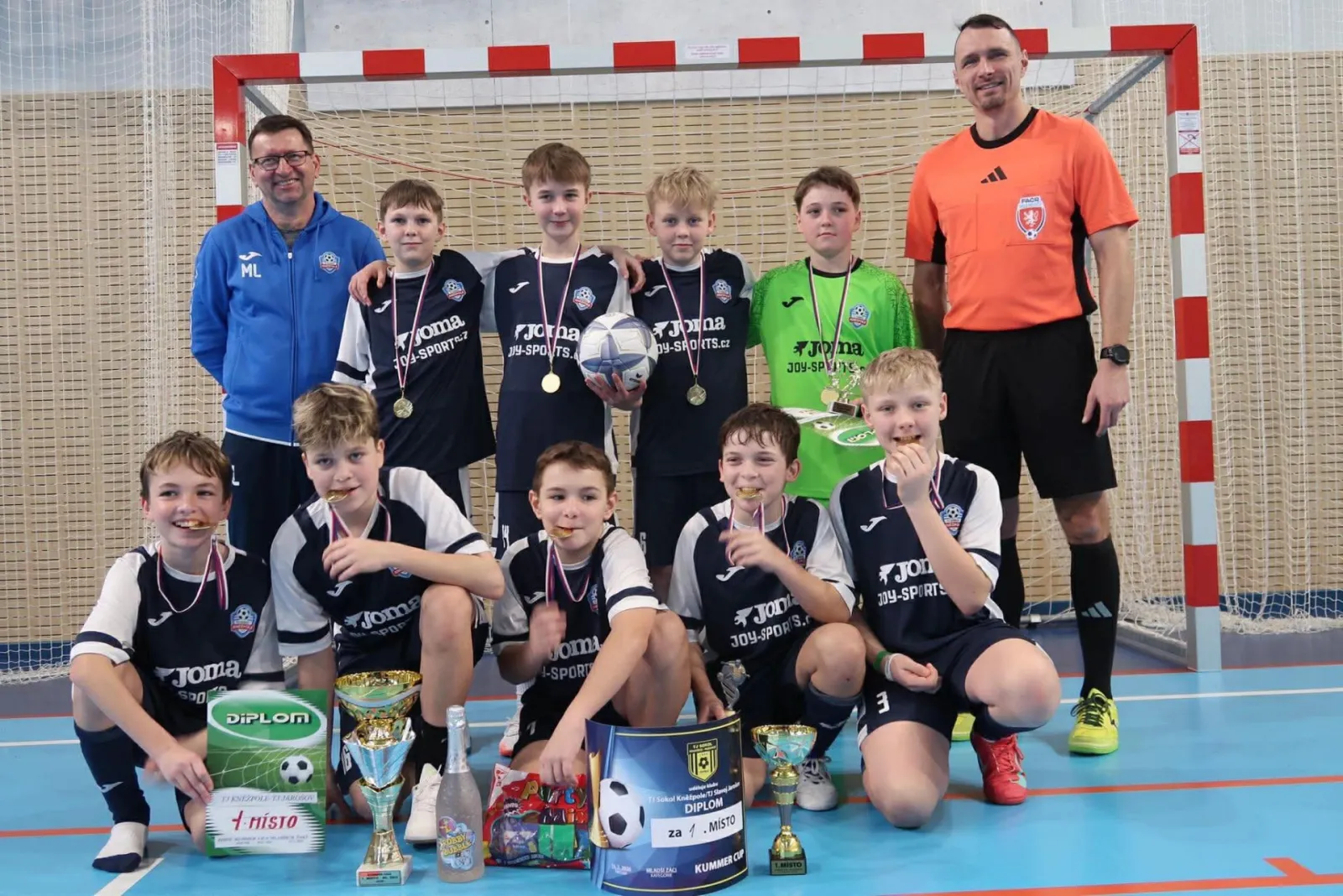 Posledním kolem pokračovala zimní halová liga, kdy naši mladší žáci zajížděli do haly v TJ SOKOL Prakšice - Pašovice. Opět se utkali s týmy domácích, TJ Sokol Hradčovice a Orel Uherský Brod. Kluci se chtěli ukázat a navázat na poslední fotbalové akce. A podařilo se! I když ve všech zápasech prohrávali, dokázali zabrat, ukázat týmového ducha i zarputilost a všechny zápasy otočit…Odvezli si tak právem nejen vítězství v tomto turnaji, ale také celkové prvenství v této halové lize. Nejlepším brankářem celé ligy byl vyhlášen Martin Zaňka!!! V tomto turnaji byl naším nejlepším hráčem po právu vybrán Jirka Kandrnal. Kluci odvedli ve všech turnajích velmi povedené výkony, plné dovedností i kombinací a ukázali tak naše tréninkové principy v praxi!!! Kluci díky a jedeme dál…