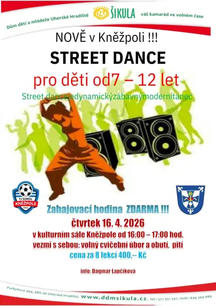 SPOLUPRÁCE| U nás sportem žijeme a proto jsme oslovili Dům dětí a mládeže Šikula a rozjeli další nabídku kroužků!!! Již v průběhu dubna jsme do Obec Kněžpole přitáhli FLORBAL a STREET DANCE…Jsme rádi, že se nám daří propojovat sportovní disciplíny a budeme v tom pokračovat i nadále!!!